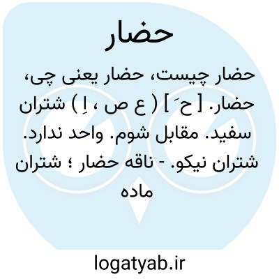 حضار. [ ح ُ / ح ِ ] ( ع ص، اِ ) شتران سپیدنیکو یا شتران سرخ. واحد و جمع در آن یکسان است. ( منتهی الارب ) ( آنندراج ). اشتر نیک رو. ( مهذب الاسماء ).