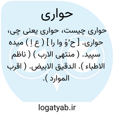 حواری. [ ح ُوْ وا را ] ( ع اِ ) میده سپید. ( منتهی الارب ) ( ناظم الاطباء ). الدقیق الابیض. ( اقرب الموارد ). آرد سفید. ( غیاث ). آرد سفید بی سبوس. || هر طعام که آنرا سپید کرده باشند. ( اقرب الموارد ) ( منتهی الارب ) ( از ناظم الاطباء ).
