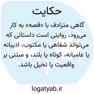 (حِ یَ ) [ ع. حکایة ] ۱ - (مص م. ) نقل کردن مطلب یا داستانی. ۲ - (اِ. ) داستان، سرگذشت، قصه.