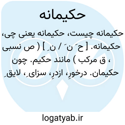 ۱ - (صفت ) از روی حکمت: سخنان حکیمانه. ۲ - همچون حکیمان: (( حکیمانه سخن میگوید. ) )