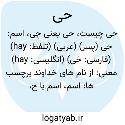 اسم: حی (پسر) (عربی) (تلفظ: hay) (فارسی: حَی) (انگلیسی: hay)