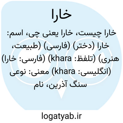 اسم: خارا (دختر) (فارسی) (طبیعت، هنری) (تلفظ: khara) (فارسی: خارا) (انگلیسی: khara)