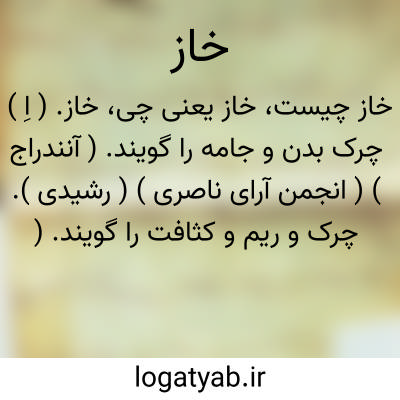 خاز. ( اِ ) چرک بدن و جامه را گویند. ( آنندراج ) ( انجمن آرای ناصری ) ( رشیدی ). چرک و ریم و کثافت را گویند. ( برهان قاطع ). چرک بود و آن را شوخ نیز خوانند و بتازی وسخ گویند. ( فرهنگ جهانگیری ). ریم اندام. ( شرفنامه منیری ). دَنَس. دَرَن. وَسَخ. ( مهذب الاسماء ). کَلَچخ: