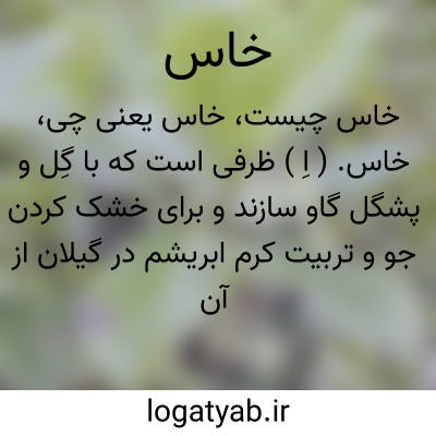 خاس. ( اِ ) ظرفی است که با گِل و پشگل گاو سازند و برای خشک کردن جو و تربیت کرم ابریشم در گیلان از آن استفاده می کنند. || درختچه ای خاردار که در همه جنگلهای شمال ایران در هر ارتفاعی از ساحل تا ( 2000 ) گزی دیده میشود.