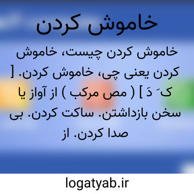 خاموش کردن. [ ک َ دَ ] ( مص مرکب ) از آواز یا سخن بازداشتن. ساکت کردن. بی صدا کردن. از گفتار بازداشتن. خاموش ساختن. خاموش گردانیدن. رجوع به «خاموش ساختن » و «خاموش گردانیدن » شود. اِسکات. ( تاج المصادر بیهقی ) ( ناظم الاطباء ) ( منتهی الارب ) ( اقرب الموارد ) ( تاج العروس ). اِصمات. ( ناظم الاطباء ) ( اقرب الموارد ) ( تاج العروس ). اِنصات. تَسکیت. ( تاج المصادر بیهقی )( ناظم الاطباء ) ( منتهی الارب ) ( اقرب الموارد ) ( تاج العروس ). تَصمیت. ( تاج المصادر بیهقی ) ( اقرب الموارد ) ( تاج العروس ). تَعقیم. ( ناظم الاطباء ) ( منتهی الارب ) ( اقرب الموارد ) ( تاج العروس ). طَس. ( اقرب الموارد ) ( تاج العروس ):