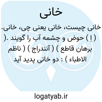 خانی. ( اِ ) حوض و چشمه آب را گویند.( برهان قاطع ) ( آنندراج ) ( ناظم الاطباء ):