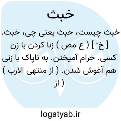 خبث. [ خ ُ ] ( ع مص ) زنا کردن با زن کسی. حرام آمیختن. به ناپاک با زنی هم آغوش شدن. ( از منتهی الارب ) ( از اقرب الموارد ) ( از تاج العروس ) ( از متن اللغة ) ( از آنندراج ) ( از ناظم الاطباء ). || لواط کردن. با پسران جفت شدن. با امردان درآمیختن. || بلایه و گربز گردیدن مرد. گربزشدن. زیرک شدن. بد شدن. ( منتهی الارب ) ( اقرب الموارد ) ( تاج المصادر بیهقی ) ( تاج العروس ) ( متن اللغة ) ( معجم الوسیط ) ( لسان العرب ) ( آنندراج )( ناظم الاطباء ). || پلید شدن. ناپاک شدن. ضد طیب. ( از منتهی الارب ) ( از اقرب الموارد ) ( از البستان ) ( از تاج العروس ) ( از متن اللغة ) ( از معجم الوسیط )( از آنندراج ) ( از ناظم الاطباء ) ( از غیاث اللغات ).