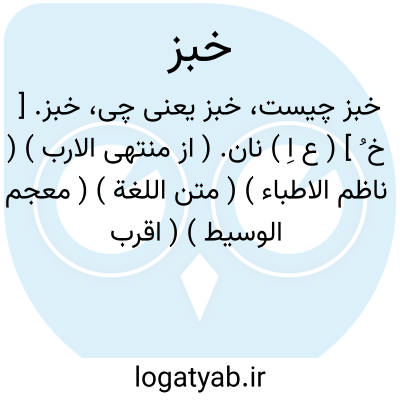خبز. [ خ ُ ] ( ع اِ ) نان. ( از منتهی الارب ) ( ناظم الاطباء ) ( متن اللغة ) ( معجم الوسیط ) ( اقرب الموارد ) ( تاج العروس ) ( لسان العرب ): و قال الاَّخَرُ انی ارانی احمل فوق رأسی خبزاً. ( قرآن 36/12 ).