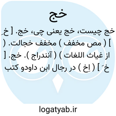 خج. [ خ َج ج ] ( ع مص ) شکافتن. شق. ( از اقرب الموارد ) ( از متن اللغة ) ( از منتهی الارب ) ( از معجم الوسیط ). منه: خج العود. ( از معجم الوسیط ). || دفع کردن. || کژ جستن باد. ( از منتهی الارب ) ( از متن اللغة ) ( از اقرب الموارد ) ( از معجم الوسیط ): خجت الریح؛ التوت فی هبوبها فهی خاجة و خجوج. || منحرف شدن کشتی از راه راست و مقصد بوسیله باد: خجت الریح السفینة؛ صرفتها عن و جهتها بشدة عصفها. ( از معجم الوسیط ). || گائیدن. ( از متن اللغة ) ( از اقرب الموارد ) ( از منتهی الارب ). || کژ شدن. منه: خج ساعده ای التوی ساعده. ( از متن اللغة ) ( ازمعجم الوسیط ). || در بیابان بحرکت در آمدن. بیابانی را زیاد پیمودن. ( از متن اللغة ). || خاک برانگیختن بهنگام راه رفتن. ( از متن اللغة ) ( از معجم الوسیط ) ( از اقرب الموارد ) ( از منتهی الارب ). || ریخ زدن. ( از منتهی الارب ) ( از معجم الوسیط ) ( از اقرب الموارد ).