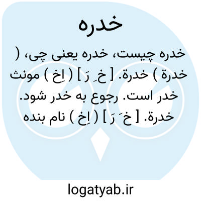 خدره. [ خ ُ / خ َ رَ ] ( اِ ) خرده و ریزه هر چیز. ( از برهان قاطع ) ( انجمن آرای ناصری ) ( آنندراج ). صاحب آنندراج و انجمن آرای ناصری آنرا مقلوب «خرده » آورده اند و صحیح می نماید. ( حاشیه برهان چ معین ):