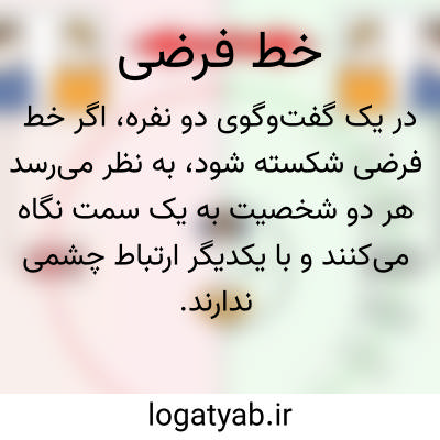 • در حالتی که یک نفر یا دو نفر، یا بیشتر ( در یک قاب ) طرف گفتگوی یک نفر یا دو نفر، یا بیشتر ( در یک قاب دیگر ) قرار می گیرد، باز خط فرضی خط واصل بین آن یک نفر یا دو نفر یا... با آن یک نفر یا دو نفر یا... است.
