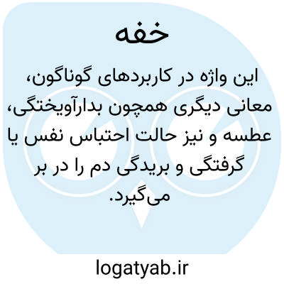 (خَ فِ ) [ په. ] (ص. ) = خپه. خبه: ۱ - گلو فشرده، کسی که به خفگی دچار شده باشد. ۲ - تاریک، دلگیر. ۳ - دارای رطوبت و گرما یا آلودگی زیاد. ۴ - (عا. ) ساکت باش.
