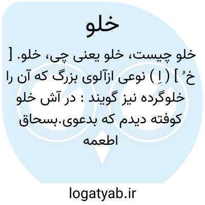 در آش خلو کوفته دیدم که بدعوی.بسحاق اطعمه ( از جهانگیری ).|| هلو که میوه ای است معروف. ( از برهان قاطع ) ( ناظم الاطباء ) ( فرهنگ جهانگیری ).