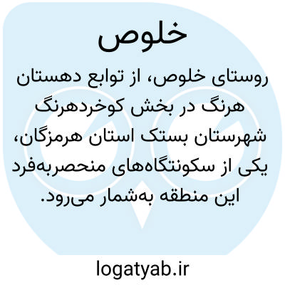 روستای خُلوص، از توابع دهستان هرنگ در بخش کوخردهرنگ شهرستان بستک استان هرمزگان، یکی از سکونتگاههای منحصربهفرد این منطقه بهشمار میرود. ویژگی متمایزکننده این آبادی در مقایسه با دیگر نقاط شهرستان، زبان خاص و کمشناختهای است که مردمان محلی به آن تکلم میکنند. این زبان، دارای ساختاری متفاوت از فارسی و دستور زبانی ویژه است که تلفظ و یادگیری آن را برای غیربومیان دشوار میسازد. اهمیت این زبان تا حدی است که موضوع پژوهشهای دانشگاهی در داخل و خارج از کشور قرار گرفته و بر اساس مطالعات انجامشده، شباهت فراوانی با زبان «جدگالی» در مناطق اطراف چابهار دارد.