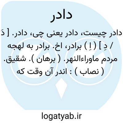 دادر. [ دَ / دِ ] ( اِ ) برادر، اخ. برادر به لهجه مردم ماوراءالنهر. ( برهان ). شقیق. ( نصاب ):