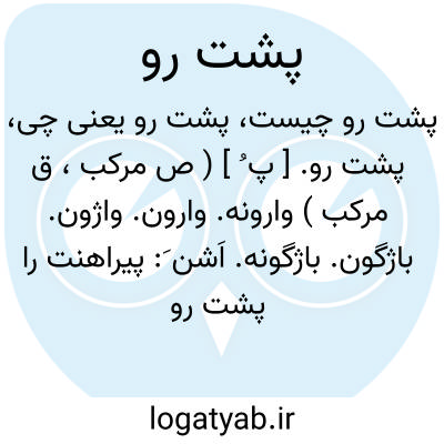 پشت رو. [ پ ُ ] ( ص مرکب، ق مرکب ) وارونه. وارون. واژون. باژگون. باژگونه. اَشن َ: پیراهنت را پشت رو پوشیده ای.