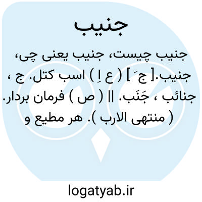 جنیب.[ ج َ ] ( ع اِ ) اسب کتل. ج، جنائب، جَنَب. || ( ص ) فرمان بردار. ( منتهی الارب ). هر مطیع و فرمانبردار. || غریب. ( اقرب الموارد ) ( منتهی الارب ) ( آنندراج ) ( دهار ). || دور و بعید. || نوعی از خرمای جید. || دردمندپهلو، گویند: رجل جنیب. ( منتهی الارب ) ( اقرب الموارد ).