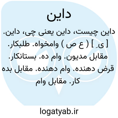 داین. [ ی ِ ] ( ع ص ) وامخواه. طلبکار. مقابل مدیون. وام ده. بستانکار. قرض دهنده. وام دهنده. مقابل بده کار. مقابل وام دار. که بدیگری بعنوان وام نقدی داده است.