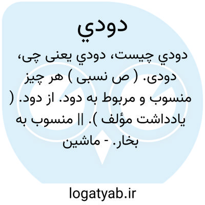 دودی. ( ص نسبی ) هر چیز منسوب و مربوط به دود. از دود. ( یادداشت مؤلف ). || منسوب به بخار.
