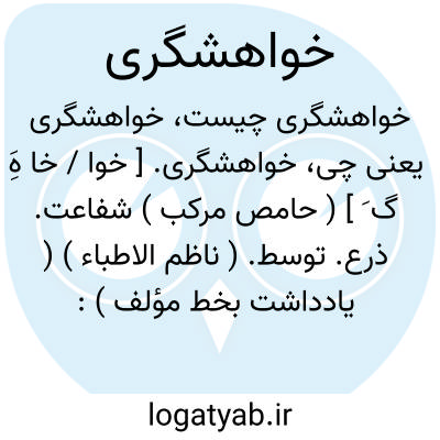خواهشگری. [ خوا / خا هَِ گ َ ] ( حامص مرکب ) شفاعت. ذرع. توسط. ( ناظم الاطباء ) ( یادداشت بخط مؤلف ):