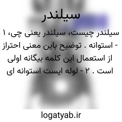 ۱ - استوانه. توضیح باین معنی احتراز از استعمال این کلمه بیگانه اولی است. ۲ - لوله ایست استوانه ای شکل که در موتور اتومبیل تعبیه شده. در داخل سیلندر پیستون حرکت میکند و گاز موجود در سیلندر را به سمت ته سیلندر - که در اصطلاح سر سیلندر گویند - میراند و در آن متراکم میکند. پس از تراکم در سر سیلندر عمل احتراق صورت می پذیرد. و بر اثر احتراق پیستون - که به وسیله دسته پیستون به میل لنگ ختم میشود - در داخل سیلندر به حرکت آمده باعث گردش میل لنگ شود. انواع اتومبیلهای کنونی دارای چهار سیلندر شش سیلندر هشت سیلندر دوازده سیلندر می باشند. ۳ - کلاه اشتوانه یی دراز که با لباس رسمی پوشند.