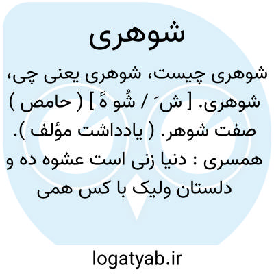 شوهری. [ ش َ / شُو هََ ] ( حامص ) صفت شوهر. ( یادداشت مؤلف ). همسری: