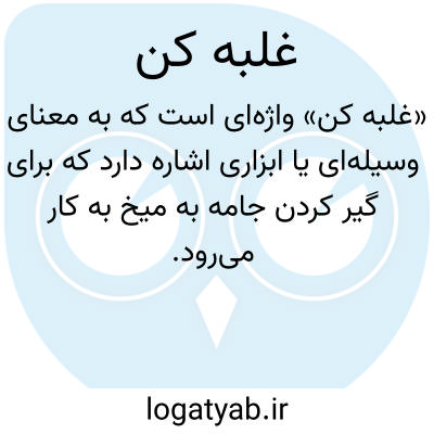 واژه‌ای است که به معنای وسیله‌ای یا ابزاری اشاره دارد که برای گیر کردن جامه به میخ به کار می‌رود. این ابزار نقش مهمی در ثابت نگه داشتن لباس‌ها یا پارچه‌ها بر روی میخ یا سطحی مشابه دارد تا از افتادن یا جابجایی آنها جلوگیری شود. به عبارت دیگر، غلبه کن وسیله‌ای است که به کمک آن می‌توان پارچه یا لباس را در موقعیتی مشخص محکم کرد.