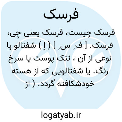 فرسک. [ ف ِ س ِ ] ( اِ ) شفتالو یا نوعی از آن، تنک پوست یا سرخ رنگ. یا شفتالویی که از هسته خودشکافته گردد. ( از منتهی الارب ). شفتالو را گویند و آن میوه ای است معروف. ( برهان ). شفتالوی بی پرز. شلیل. تالانه. زلیق. شفترنگ. چلازه. ( یادداشت به خط مؤلف ).