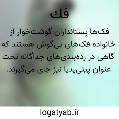 هر یک از پستانداران گوشت خوار تیرۀ خوک های آبی گوشتالو و فوسیدا. گاهی نیز در راستۀ مجزایی با نام پینی پیدا قرار می گیرند. فک های گوش دار یا شیرهای دریایی، از خانوادۀ اُتاریدا، بر خلاف فک های حقیقی، از خانوادۀ فوسیدا، دارای گوش های خارجی کوچکی اند. فک ها دارای بدنی مقاوم در برابر جریان آب اند و برای عایق کردن بدن، و باله هایی جلویی و عقبی شان چربی فراوانی دارند. قادرند سوراخ های بینی شان را به هنگام غواصی ببندند و در زیر آب، اکسیژن را از جریان خون خود به دست می آورند. فک ها از ماهی، اسکوئید، و سخت پوستان تغذیه می کنند و عموماً در دریاهای قطب شمال و قطب جنوب، همچنین در آب های مدیترانه، کارائیب و هاوایی یافت می شوند. در فک های حقیقی باله های عقبی نیروی شنا را فراهم می کنند، اما نمی توانند زیر بدن قرار گیرند و برای راه رفتن روی زمین به کار روند. در بین فک های گوش دار و والروس ها، باله های جلویی مهم ترین اعضای شنایند. فک ها می توانند باله های عقبی شان را جلو بیاورند و آن ها را به منظور راه رفتن زیر بدن قرار دهند. گروهی از فک ها را گله می نامند. کلنی تولیدمثلی را با نام گروه تولیدمثلی می شناسند. افراد جوان توله، نرهای بالغ گاو نر، و ماده ها گاو ماده نامیده می شوند.گونه ها. گونۀ فک های حقیقی شامل فک معمولی یا فک لنگرگاه phoca vitulina است که در نواحی ساحلی بیشتر نقاط نیمکره شمالی، و با بیشترین تراکم در واش، واقع در ایست آنجلیای انگلستان یافت می شوند. جمعیت اصلی فک خاکستری Halichoerus grypus، که به طول۲.۷ متر می رسد، در اطراف سواحل بریتانیا زیست می کند، اما در سواحل دور از ساحل کانادا، در نیوفاوندلند، و همچنین در ایسلند و اسکاندیناوی نیز یافت می شود. در ۱۹۹۷، حدود ۲۲۰هزار فک خاکستری در جهان وجود داشت. بزرگ ترین فک، فک فیل سان جنوبی Mirounga leonina، حدود شش متر طول و چهار تن وزن دارد. نر دارای پوزه ای با قابلیت بادکردن است که بخش رشدیافته ای از حفره بینی است و به منزلۀ تشدیدکنندۀ فریاد به کار می آید. بیشتر از اسکوئید تغذیه می کند و حدود ۸۰درصد زندگی خود را زیر آب می گذراند. از همۀ جمعیت این گونه که بالغ بر ۶۰۰هزار عضو است، نیمی در جزیرۀ جورجیای جنوبی تولیدمثل می کنند. این جانوران در سپتامبر زایمان می کنند و طی سه هفته آمادۀ جفت گیری مجددند. در ماه اکتبر، یک نر منفرد که حدوداً سه برابر بزرگ تر از فرد ماده است، حراست از حرم سرایی با ۱۰۰ ماده را بر عهده می گیرد و با نرهای دیگری که به قلمرویش نزدیک می شوند می جنگد. این جانور مالکیت خود را با فریادهای بلند مشخص می کند. فقط نرهای کاملاً بالغ قدرت نگهداری از چنین حرم سرایی را دارند. پس از جفت گیری در نوامبر، ماده یک توله به دنیا می آورد که برای چندین هفته از مادر شیر تغذیه می کند و ماده آن را ترک نمی کند. بقای ماده به واسطۀ چربی بدن است. هنگامی که توله ها از شیر گرفته شدند، مادر دوباره آماده جفت گیری است. فک های فیل سان سالانه ۲۱هزار کیلومتر بین جزایر کانال کالیفرنیا و محل تغذیه شان در اقیانوس آرام مهاجرت می کنند. کوچک ترین فک، فک بایکال Pusa sibirica است، فقط۱.۲ متر طول دارد و یگانه فکی است که در آب شیرین زندگی می کند. فک های گوش دار شامل شیرهای دریایی و فک های خزدارند. نادرترین گونۀ فک ها، فک راهب، و یگانه گونه ای است که در آب های گرم زندگی می کند. فک راهب کارائیب Monachus tropicalis ممکن است منقرض شده باشد. فک راهب مدیترانه Monachus monachus عموماً در بخش های شرقی دریای اژه مشاهده می شود. فک راهب هاوایی Monachus schauinslandi به سبب تخریب های انسانی در معرض خطر است. در ۱۹۹۶، جمعیت فک های راهب مدیترانه ای حدود ۴۰۰ تا ۵۵۰، و در ۱۹۹۸، جمعیت فک های راهب هاوایی حدود ۱۲۰۰ جانور بود. فک پلنگی Hydrurga leptonyx دارای طرح های نقطه دار مشخصی در زیر بدنش است و شکارچی چابک پنگوئن و دیگر گونه های فک، ماهی و کریل است. این فک پنگوئن ها را به روشی خاص می خورد؛ به این معنی که پرنده را با دندان هایش آنقدر تکان می دهد تا گوشت پرنده خارج شود. طول نرها به ۳ متر
