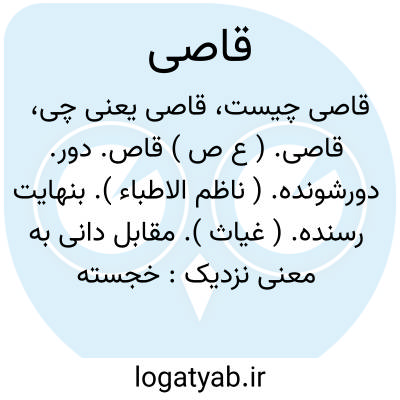 قاصی. ( ع ص ) قاص. دور. دورشونده. ( ناظم الاطباء ). بنهایت رسنده. ( غیاث ). مقابل دانی به معنی نزدیک: