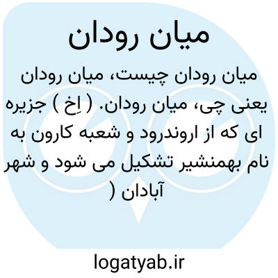 میان رودان. ( اِخ ) جزیره ای که از اروندرود و شعبه کارون به نام بهمنشیر تشکیل می شود و شهر آبادان ( عبادان ) در آن واقع است. رجوع به معجم البلدان شود.