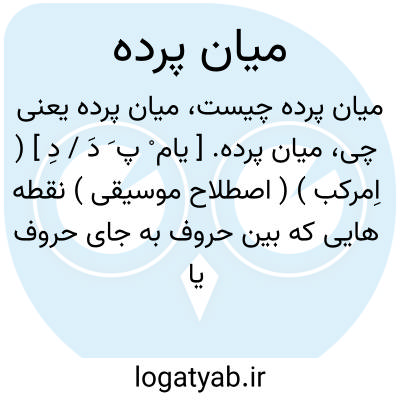 میان پرده. [ یام ْ پ َ دَ / دِ ] ( اِمرکب ) ( اصطلاح موسیقی ) نقطه هایی که بین حروف به جای حروف یا پرده های متروک گذارند. نیم پرده. || ( در سینما یا تآتر ) فاصله دو پرده نمایش. در فاصله دو قسمت مجزا از یک نمایش که پرده سن می افتد.