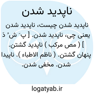 ( مصدر ) ۱ - پنهان شدن مخفی گشتن. ۲ - غایب شدن غیبت کردن. ۳ - غروب کردن ( ستاره )افول:[ وناپدیدشدن ستاره ازدیدار.] ۴ - فرو رفتن غرق شدن: [ وچندانکه بیشترنیرو میکرد فروتر میرفت تا ناپدید شد.] ۵ - گم شدن مفقودشدن. ۶ - فرو مالیده شدن له شدن. ۷ - نابود گشتن. ۸ - مستورشدن پوشیده شدن.
