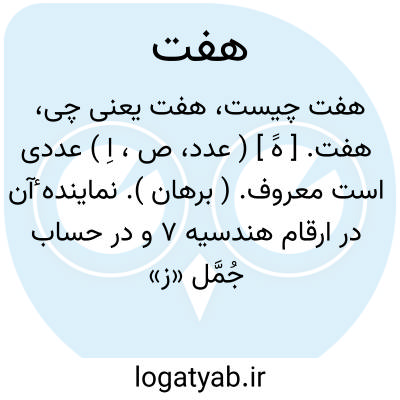 (هَ ) [ په. ] (اِ. ) عدد اصلی میان شش و هشت (۷ ).، ~ قلم آرایش کردن آرایش تمام، بزک کامل.، ~ پادشاه را خواب دیدن کنایه از: به خواب عمیق فرو رفتن.، ~ کفن پوساندن مدت ها پیش مردن.