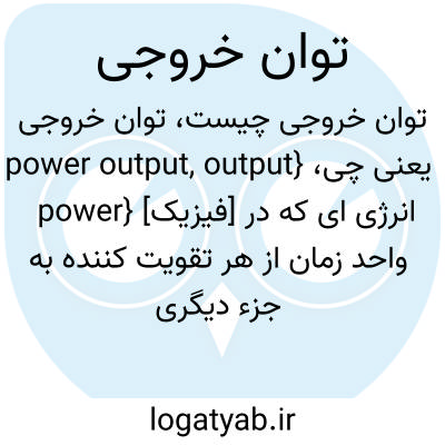 {power output, output power} [فیزیک] انرژی ای که در واحد زمان از هر تقویت کننده به جزء دیگری از مدار، مانند بلندگو، می رسد