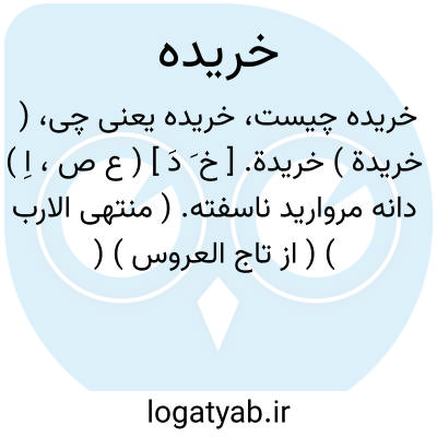 (خَ دَ ) [ ع. خریدة ] (ص. ) ۱ - مروارید ناسفته. ۲ - دختر نارسیده. ۳ - زن شرمگین. ج. خرائد.