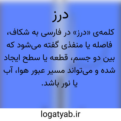 کلمه‌ی «درز» در فارسی به شکاف، فاصله یا منفذی گفته می‌شود که بین دو جسم، قطعه یا سطح ایجاد شده و می‌تواند مسیر عبور هوا، آب یا نور باشد. این واژه در کاربردهای مختلف، از ساختمان‌سازی و صنایع گرفته تا لباس و تجهیزات فنی، مورد استفاده قرار می‌گیرد و نشان‌دهنده نقطه‌ای است که اتصال کامل میان اجزاء در آن وجود ندارد. در متون فنی و مهندسی، درز اهمیت زیادی دارد زیرا ممکن است باعث نفوذ آب، هوا یا مواد دیگر شود و نیازمند آب‌بندی یا پوشش مناسب باشد. در ادبیات و بیان‌های استعاری نیز «درز» می‌تواند به معنای شکاف یا فاصله در روابط، گفتار یا اطلاعات به کار رود و گاهی نشان‌دهنده راهی برای افشای اسرار یا نکات پنهان است. در زندگی روزمره، ما با درزها در پنجره‌ها، درها، لباس‌ها و حتی تجهیزات الکترونیکی روبرو هستیم و توجه به آن‌ها می‌تواند از هدررفت انرژی یا آسیب جلوگیری کند. این کلمه با مفاهیمی مانند شکاف، سوراخ، منفذ، ترک و روزنه هم‌معنی است و در مکالمات روزمره و متون تخصصی کاربرد گسترده دارد.
