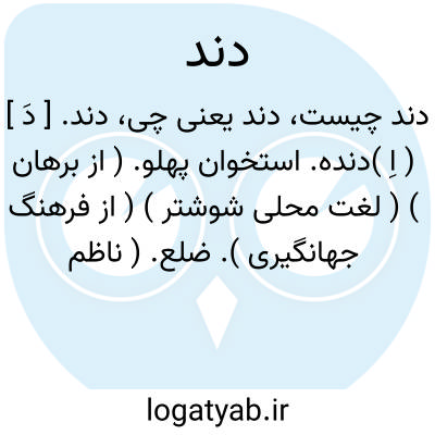 دند. [ دَ ] ( اِ )دنده. استخوان پهلو. ( از برهان ) ( لغت محلی شوشتر ) ( از فرهنگ جهانگیری ). ضلع. ( ناظم الاطباء ). استخوان پهلو که آن را دنده نیز گویند. ( آنندراج ):