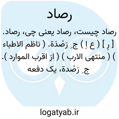 رصاد. [ رَص ْ صا ] ( ع ص، اِ ) شبگرد. || پاسبان شب در سپاه. || گیرنده باج راه. ( از ناظم الاطباء ). گیرنده باج. ( فرهنگ فارسی معین ). راه بان. ( یادداشت مؤلف ). راه وان. ( مهذب الاسماء ). || عالم به علم هیأت و رصدکننده. ( ناظم الاطباء ). رصدکننده. عالم هیأت. ( فرهنگ فارسی معین ). || ریاضی دان. ( ناظم الاطباء ). || رصدخانه. ( ناظم الاطباء ) ( فرهنگ فارسی معین ).