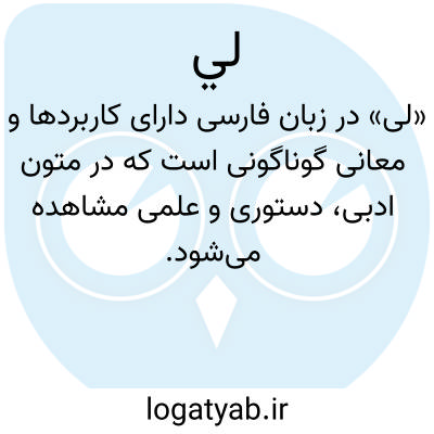 «لی» در زبان فارسی دارای کاربردها و معانی گوناگونی است که در متون ادبی، دستوری و علمی مشاهده میشود. یکی از کاربردهای آن بهصورت پسوند است که در برخی ترکیبها و واژهها بهکار میرود و نقش ساخت واژه یا تکمیل معنا را بر عهده دارد. این پسوند گاه در متون کهن یا در واژههای خاص دیده میشود و در ساخت برخی صورتهای اسمی یا قیدی حضور دارد. برای نمونه، در واژهٔ «اسملی» این جزء بهعنوان بخشی از ساخت واژه بهکار رفته و به تکمیل معنای آن کمک میکند. چنین کاربردهایی نشاندهندهٔ تنوع نقشهای واژهها و اجزای واژگانی در زبان فارسی و تحول تاریخی آنها در طول زمان است.