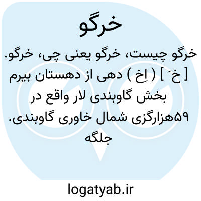خرگو. [ خ َ ] ( اِخ ) دهی از دهستان بیرم بخش گاوبندی لار واقع در 59هزارگزی شمال خاوری گاوبندی. جلگه، گرمسیر. آب از چاه و باران و محصول آن غلات و لبنیات و خرما. شغل اهالی زراعت و گله داری و راه فرعی است. ( از فرهنگ جغرافیائی ایران ج 7 ).