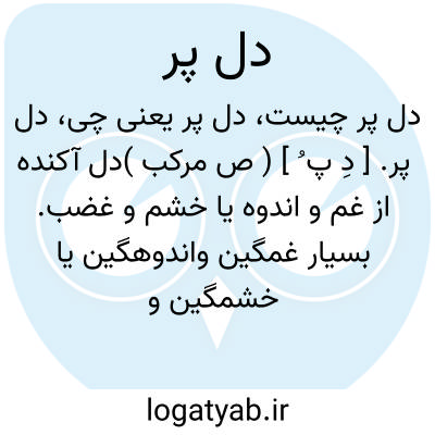 دل پر. [ دِ پ ُ ] ( ص مرکب )دل آکنده از غم و اندوه یا خشم و غضب. بسیار غمگین واندوهگین یا خشمگین و غضبناک. رجوع به دل پری شود.