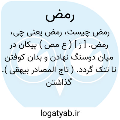 رمض. [ رَ م َ ] ( ع مص ) گرم شدن روز. ( تاج المصادر بیهقی ) ( دهار ). سخت گرم شدن روز. ( از منتهی الارب ). شدت یافتن حرارت روز. ( از اقرب الموارد ) ( از متن اللغه ). || سوختن پای از گرمای زمین. ( تاج المصادر بیهقی ). سوخته شدن پای از گرمی زمین. ( زوزنی ). سوختن پای کسی از گرمی زمین داغ. ( از اقرب الموارد ). سوختن پای کسی از گرمی زمین سخت گرم. ( از منتهی الارب ) ( آنندراج ). || سخت تافتن گرمای آفتاب بر ریگ و جز آن. ( از منتهی الارب ). شدید شدن تابش آفتاب بر ریگ. ( از اقرب الموارد ). شدت یافتن تابش و حرارت آفتاب بر زمین. ( از متن اللغه ). || به گرما چریدن گوسپند و سوختن درون و ریشناک شدن جگر و بیمار گردیدن وی از آن. ( از منتهی الارب ). چریدن گوسفند در شدت گرما و زخم شدن جگر او. ( از اقرب الموارد ) ( از متن اللغه ). || سوختن سپل فصال از گرمی زمین تفسیده. و در حدیث آمده: صلوة الاوابین اذا رمضت الفصال من الضحی؛ ای اذا وجد الفصیل حرالشمس من الرمضاء؛ یعنی صلوة ضحی این وقت است. ( از منتهی الارب ). رسیدن گرمی تافته بر بچه شتر و سوختن سمهای وی. و این وقت نماز ظهر است. ( از متن اللغه ). || گرما زدن کسی را و بازگشتن از بادیه به آبادی و شهر. ( از متن اللغه ). || رمض صائم؛ سخت شدن گرمی درون روزه دار. ( از متن اللغة ) ( ناظم الاطباء ). || ( اِ ) شدت تابش آفتاب بر ریگ و جز آن. ( از متن اللغة ). گرمی سنگ ازشدت حرارت آفتاب. || شدت گرما. ( از لسان العرب ). || سوزش خشم. ( از متن اللغه ) ( از اقرب الموارد ). || بارانی که قبل از پاییز ببارد. ( از متن اللغه ). بارانی که قبل از پاییز ببارد و زمین حرارت سوزانی پیدا کند. ( از اقرب الموارد ).
