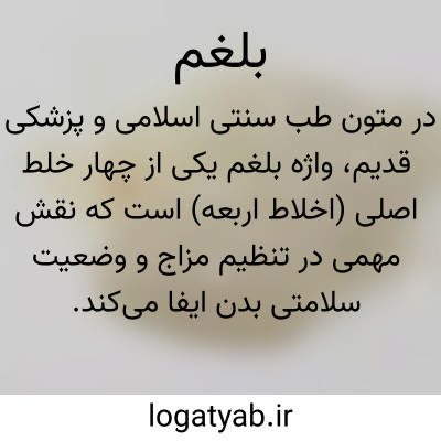 در متون طب سنتی اسلامی و پزشکی قدیم، واژه بلغم یکی از چهار خلط اصلی (اخلاط اربعه) است که نقش مهمی در تنظیم مزاج و وضعیت سلامتی بدن ایفا می‌کند. بلغم مایعی است نسبتاً سرد و مرطوب که در فرآیند هضم غذا و تبدیل آن به خلط‌ها تولید می‌شود. این خلط در وضعیت تعادل خود برای بدن مفید است و در تأمین رطوبت اعضا و حفظ اندام‌ها نقش دارد. وقتی این ماده به مقدار زیاد تولید شود یا در بخش‌های بدن تجمع یابد، به عنوان «غلبه بلغم» شناخته شده و ممکن است سبب اختلال در کارکرد اعضا شود. وقتی بلغم در بدن بیشتر شود یا در عضو خاصی تجمع یابد، علائمی مانند سنگینی بدن، کسالت، خواب‌آلودگی، نفخ معده، رنگ‌پریده بودن چهره، سردی مزاج و اختلال در هضم غذا بروز می‌کند. پزشکان طب سنتی معتقدند که این مایع در اصل خونی ناپخته است که با «پختگی» (نضج) در بدن تبدیل به خلط دم می‌شود.