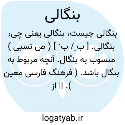 ( صفت ) منسوب به بنگال. ۱ - آنچه مربوط به بنگال باشد. ۲ - از مردم بنگال اهل بنگال ۳ - زبانی که مردم بنگال بدان تکلم کنند و آن آمیخته ایست از هندی فارس و عربی.