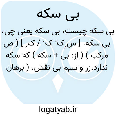که هم سکه نام دارا بود؟نظامی.|| فاقد زر مسکوک. بی زر و سیم. رجوع به سکه شود. || کنایه از مردم بیقدر و بی اعتبار و بی شأن و شوکت و وقار. ( برهان ) ( انجمن آرا ) ( ناظم الاطباء ) ( آنندراج ). بیقدر و بی مقدار. ( غیاث ). کنایه از مردم ناکاره. ( لغت محلی شوشتری خطی ). رجوع به سکه شود. || هر چیزی که طراوت و نمودی نداشته باشد. ( برهان ) ( ناظم الاطباء ). بی نمود. بی ارج. بیرونق. بی آب و رنگ.