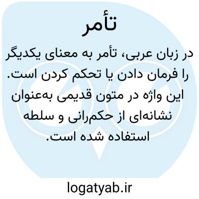 در زبان عربی، تأمر به معنای یکدیگر را فرمان دادن یا تحکم کردن است. این واژه در متون قدیمی به‌عنوان نشانه‌ای از حکم‌رانی و سلطه استفاده شده است. علاوه بر معنای فرمان‌راندن، این کلمه می‌تواند به معنای مشورت کردن و تبادل نظر نیز به کار رود؛ یعنی وقتی گروهی یا افرادی درباره موضوعی تصمیم می‌گیرند و با هم همفکری می‌کنند، گفته می‌شود که آن‌ها تأمر داشته‌اند.