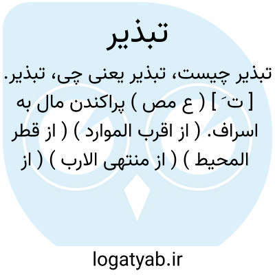 ۱-( مصدر ) پراکندن پریشان ساختن. ۲- ( مصدر ) باد دست بودن دست بباد بودن. ۳- ( اسم ) فراخ روی فراخ رفتاری. جمع: تبذیرات.