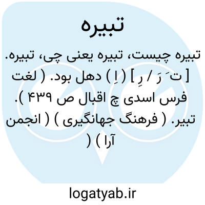تبیره. [ ت َ رَ / رِ ] ( اِ ) دهل بود. ( لغت فرس اسدی چ اقبال ص 439 ). تبیر. ( فرهنگ جهانگیری ) ( انجمن آرا ) ( آنندراج ) ( فرهنگ رشیدی ) ( ناظم الاطباء ) ( فرهنگ نظام ). بمعنی تبیر است که دهل و کوس و طبل و نقاره باشد. ( برهان ). طبل و کوس و دهل. ( غیاث اللغات ). دهل را نیز گویند. ( فرهنگ اوبهی ). طبل و دمامه که آن را کوس نیز گویند. ( شرفنامه منیری ). دهل و نقاره. ( فرهنگ خطی کتابخانه سازمان ):