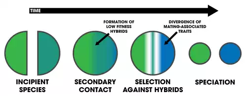 تثبیت (گونه زایی). تقویت، تثبیت یا پایدارمانی ( به انگلیسی: Reinforcement ) یا اثر والاس ( به انگلیسی: Wallace's effect )، بخشی از فرایند گونه زایی است که در آن، انتخاب طبیعی موانع تولیدمثلی بین دو جمعیت گونه را افزایش می دهد. این اتفاق زمانی رخ می دهد که انتخاب طبیعی، علیه افراد دورگه با شایستگی تکاملی کم وارد عمل شود. این ایده نخستین بار از سوی آلفرد راسل والاس زیست شناس و جغرافی دان بریتانیایی مطرح شد. به همین دلیل به آن اثر والاس نیز گفته می شود. مفهوم مدرن تثبیت گونه زایی توسط تئودوسیوس دوبژانسکی، زیست شناس تکاملی اوکراینی - امریکایی ارایه شد. دوبژانسکی فرض کرد که وقتی گونه به صورت آلوپاتریک دچار جدایی شود؛ پس از مدتی و طی تماس ثانویه دو جمعیت، دورگه هایی به وجود می آیند که شایستگی تکاملی کمی دارند. حال وقتی دورگه ها نتوانند زاده هایی زیستا به وجود آورند، انتخاب طبیعی اتفاق می افتد و موجب جدایی بیشتر دو گونه می شود. تثبیت، جزو معدود مواردی است که به طور مستقیم باعث افزایش جدایی پیش زیگوتی می شود. برای توضیح تثبیت گونه زایی، مدل های مختلفی ارایه شده است که هر کدام از آنها جنبه های مختلفی را بررسی کرده اند. این جنبه ها عبارتند از: ژنتیک، ساختار جمعیت، اثر انتخاب و حتی رفتارهای تولیدمثلی. شواهد این فرایند هم در آزمایشگاه و هم در طبیعت ( بی مهرگان، مهره داران و قارچ ها ) دیده می شود. Jerry coyne و Allen orr معتقدند که این نظریه در طول تاریخ سه دوره را از سر گذرانده است: دوره اول: تأیید آن به خاطر دورگه های با شایستگی کم. دوره دوم: رد آن در اثر مشاهده چند دورگه با شایستگی بالا. دوره سوم: تأیید مجدد آن با توجه به شواهد تجربی بالا و مدل های واقعی و منطقی ساختار جمعیت و الگوی مهاجرت نیز می توانند بر تثبیت گونه زایی اثر بگذارند. این تفاوت هنگام آزمایش تغییرات روی دو جمعیت مشخص شد: اول: جمعیتی که ایزوله بودند و فقط در یک جهت می توانستند مهاجرت کنند. دوم: جمعیتی که می توانستند در هر دو جهت عقب و جلو مهاجرت خود را انجام دهند. عامل دیگر مؤثر در تثبیت گونه زایی تغییر الگوهای جفت یابی به مرور زمان می باشد؛ مثلاً وقتی آوازها و سیگنال های جفت یابی در یک گونه زیاد و متنوع شوند، در نتیجه برخی از آن ها در پایین ترین اولویت برای انتخاب قرار می گیرند. تازه ترین کار تحقیقی بر روی تثبیت گونه زایی، شبیه سازی های کامپیوتری را مورد استفاده قرار داده و همان نتایج پیشین را به دست آورده که مهر تأییدی است بر تثبیت گونه زایی.